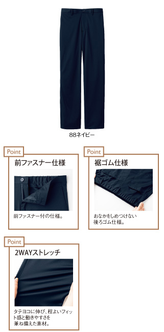 介護する人のウエア ケアウエア ボトム 「動きやすさをもっと」軽く柔らかい素材です。